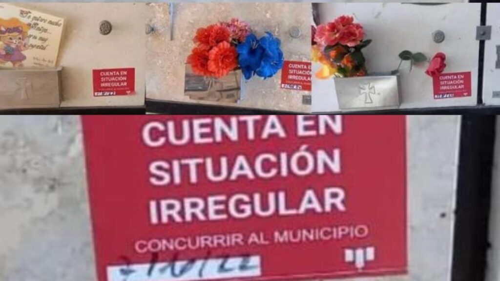 «Cuenta en situación irregular. Concurrir al municipio», decían los stickers pegados en las placas que cubren algunos de los nichos y que fueron retirados este miércoles por agentes municipales.