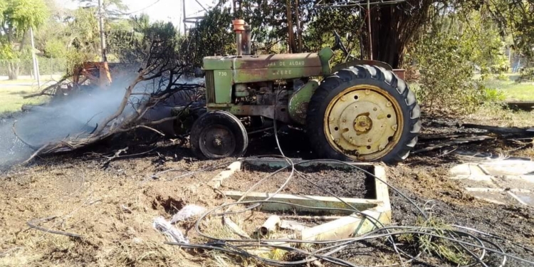 Cercano al lugar se encuentra un transformador que hizo un cortocircuito y se produjo un incendio. Las llamas se extendieron sobre el césped llegando a tomar dos máquinas y demás herramientas.
