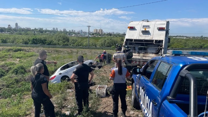 Una familia salvó su vida de milagro tras sufrir un accidente en la autopista Rosario Santa Fe. Bomberos y un camión recolector lograron rescatar el auto.