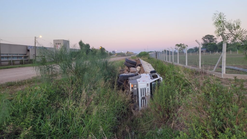 En las primeras horas de la mañana de este jueves un camión despistó y terminó volcado sobre una cuneta, en Gálvez. Su chofer resultó herido.