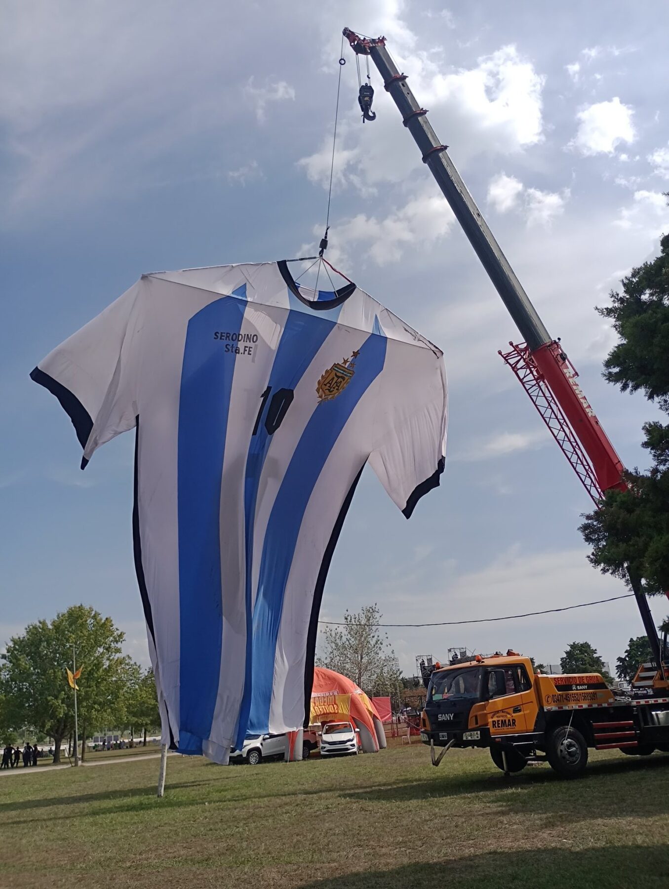 Como detalle de color, las miles de personas que asistieron disfrutaron del show de Natalia Pastorutti y de la camiseta de la Selección Argentina más grande del país que llegó hasta Las Parejas. Mide 18 metros de alto y pesa 100 kilos, diseñada y hecha realidad por la Comuna de Serodino, a través de la gestión de Juan Pío Drovetta.