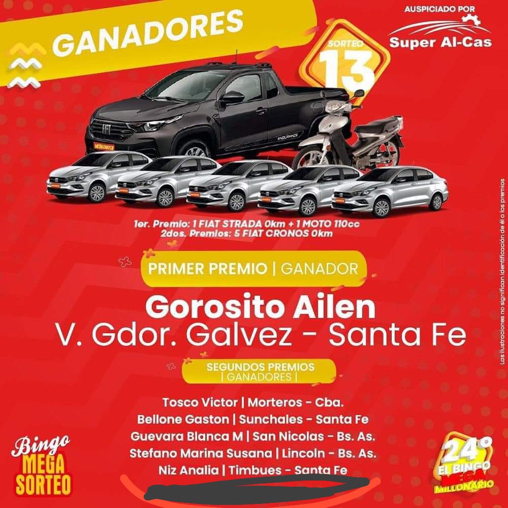 En tanto, otra mujer, en este caso domiciliada en Timbúes, Analía Niz, se ganó uno de los automóviles Fiat Cronos 0km que estaban en juego como segundos premios del sorteo número 13.