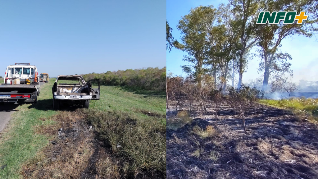 Allí se estaba produciendo el incendio de una camioneta marca Chevrolet S10 cabina simple. Cabe destacar que sus ocupantes, oriundos de Capitán Bermúdez, resultaron ilesos.