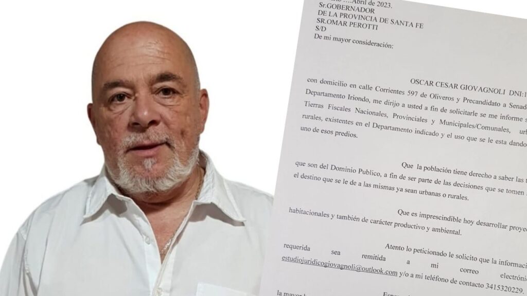 En un contexto de crisis en materia ambiental y habitacional, el precandidato a senador provincial por el Departamento Iriondo, Oscar Giovagnoli, dirigió un pedido a las diferentes esferas de gobierno para conocer la situación de las tierras fiscales en su región.