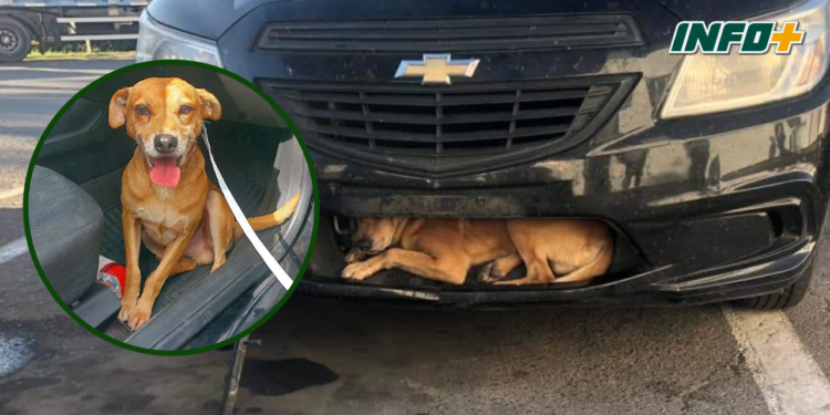 Todo comenzó cuando se descubrió al can en un lugar insólito de un auto marca Chevrolet, al cual le faltaba la patente y tenía daños en un plástico.