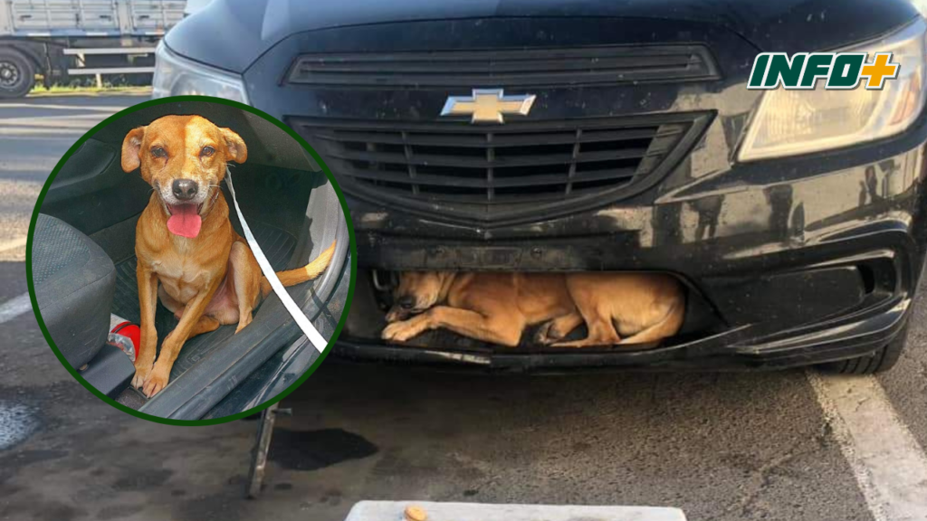 Todo comenzó cuando se descubrió al can en un lugar insólito de un auto marca Chevrolet, al cual le faltaba la patente y tenía daños en un plástico.