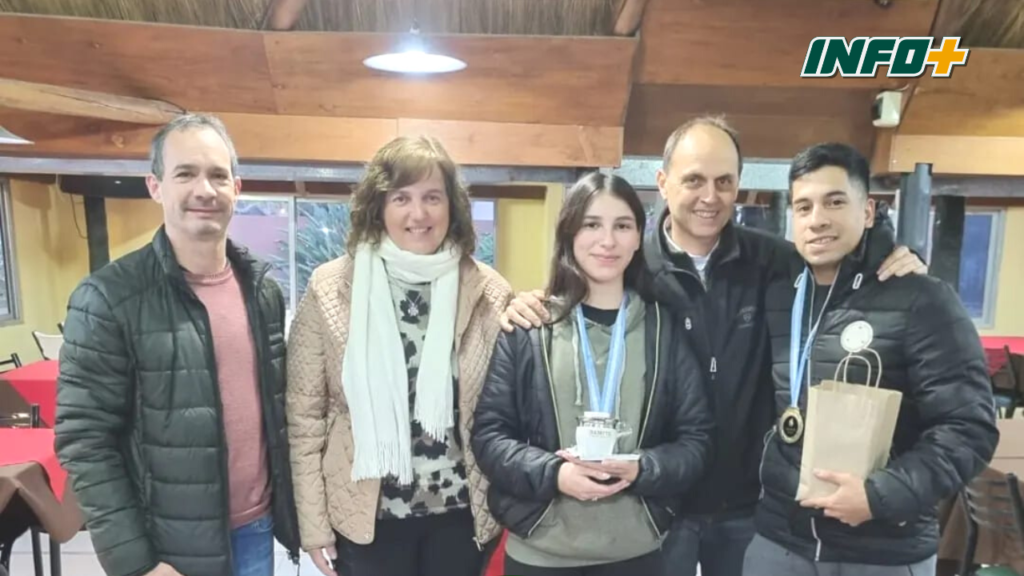 La Intendenta Guadalupe Lanatti, el Secretario de Gobierno Fernando Gómez Gobbo y el Senador Hugo Rasetto, hicieron entregas a Evelin y Brian Centeno de la medalla al Orgullo de Iriondo, como reconocimiento a su destacada actuación.