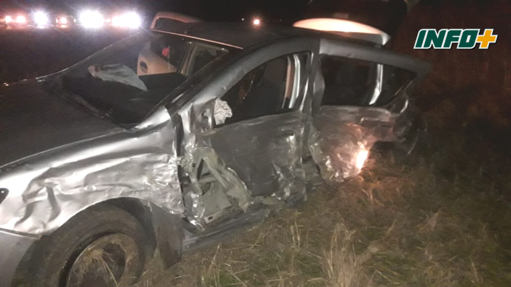 El accidente se produjo cuando una camioneta Fiat Fiorino impactó contra el costado izquierdo de un auto marca Renault, de color gris, en el que viajaban cuatro amigos oriundos de San Genaro, que circulaban de regreso a su ciudad.