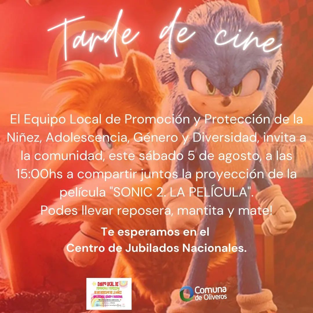 Será el próximo sábado 5 de agosto en el Centro de Jubilados Nacionales a partir de las 15 horas donde se proyectará «Sonic2».