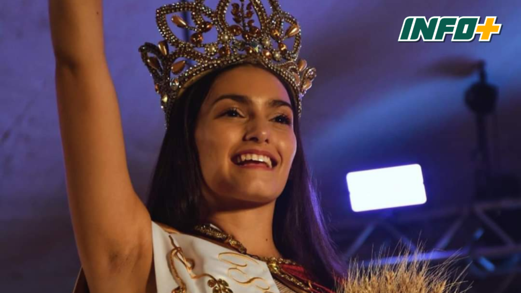 Delfina Ferracuti es de la ciudad de San Genaro y fue coronada en la noche de este domingo como la 69ª Reina Nacional del Trigo en la ciudad cordobesa de Leones.
