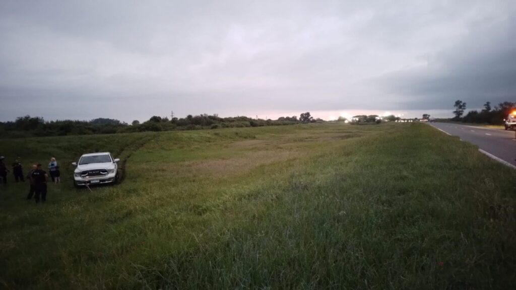 Una camioneta terminó a varios metros de la traza de la autopista Rosario Santa Fe tras despistar en la jornada de este lunes.