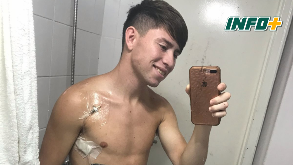 «Hace minutos nos comunicaron del alta, tenemos que hacer algunos papeles y seguramente por la tarde vamos a andar en casa», contó previo a salir del sanatorio tras 19 días de internación. Cerca de las 12.30, el alta se efectivizó y el joven posó para la foto con pulgares hacia arriba.