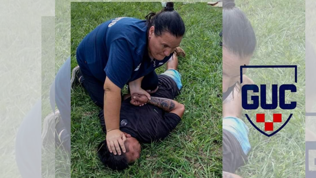La Jefa de la G.U.C. bajó del vehículo y corrió para alcanzarlo mientras que por la calle la vicepresidenta comunal lo persiguió en su auto hasta doblar en calle Moreno donde, a unos 25 metros, la jefa de la G.U.C. logró reducir al ladrón.