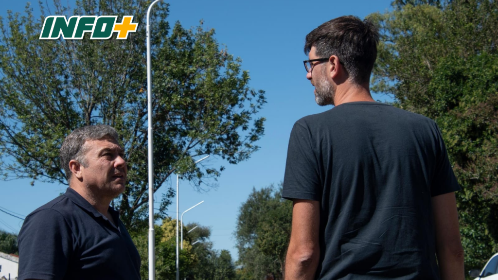 El Presidente Comunal, Antonio Fiorenza, recorrió junto al Secretario de Planeamiento y Servicios Públicos, Arq. Gonzalo Pezzino, la colocación de nuevas luminarias en el Barrio Villa Adriana. Esta obra se enmarca dentro del Plan Integral Barrial de Iluminación 2024, el mismo continuará con la iluminación completa en diferentes barrios de Timbúes.