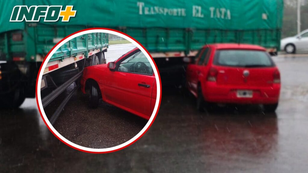 Minutos antes de las 13 horas de este lunes un fuerte accidente se produjo en uno de los ingresos más transitados de Totoras, donde un automóvil se incrustó literalmente contra un camión.
