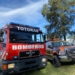 A su arribo, los brigadistas se encontraron con una máquina cosechadora totalmente envuelta en llamas y se procedió a sofocar lo que quedaba de la misma.