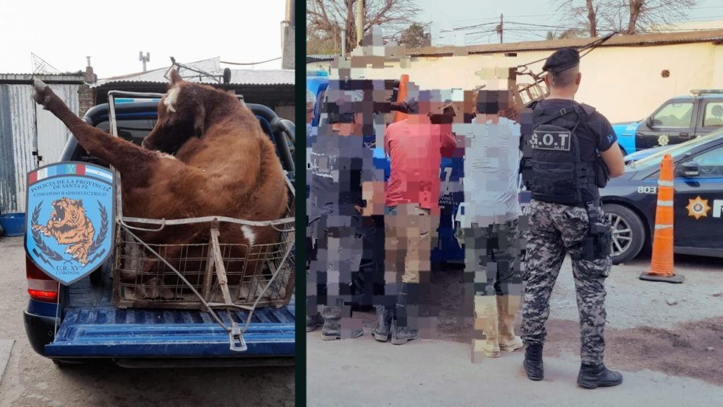Cinco hombres fueron detenidos por faenamiento en Coronda. Personal del comando radioeléctrico los interceptó mientras trasladaban al animal vacuno de gran porte en un carro.