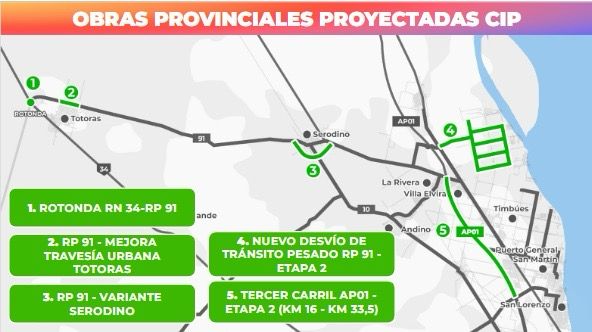 Los proyectos ponen el foco en atenuar el impacto de los camiones en épocas de cosecha. Es por eso que se realizará también una variante de la Ruta 91 a la altura de Serodino para desviar todo el tránsito pesado y que no pase por el centro del pueblo. Un viejo anhelo de los serodinenses que parece será realidad.
