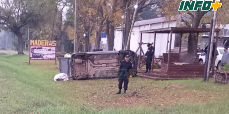 El episodio ocurrió alrededor de las 7:30 de la mañana cuando un utilitario Renault Kangoo despistó y terminó volcando sobre la cuneta, metros después de cruzar el puente del canal Serodino.