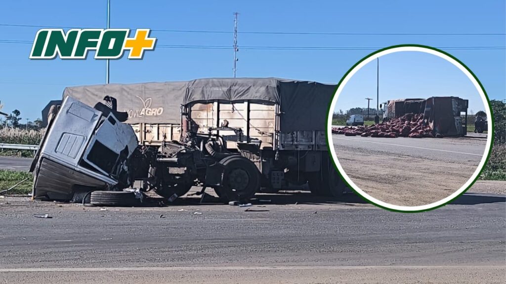 El siniestro se produjo poco antes de las 15 horas entre un camión que transportaba bolsas de batatas, las cuales quedaron desparramadas en el lugar.