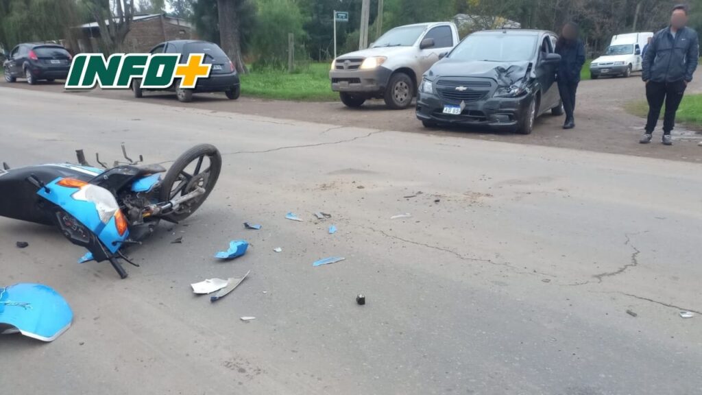 El siniestro se produjo sobre la traza nacional, en la intersección de calle Dorrego, entre una moto marca Motomel 110 en la que viajaban los dos jóvenes, oriundos del pueblo, y un auto marca Chevrolet Onix, conducido por una mujer, también de la localidad.