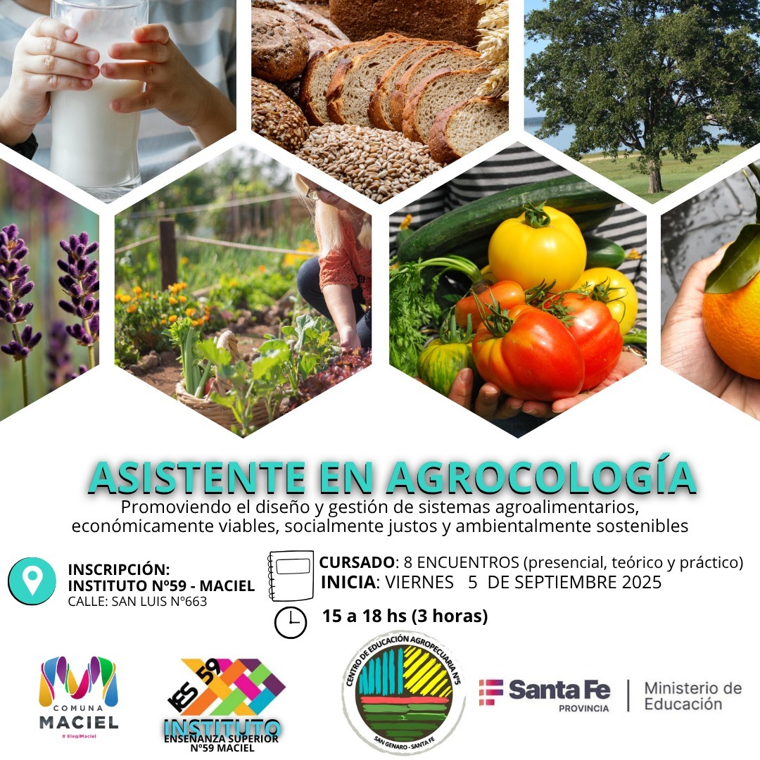 El Instituto Superior Nº 59 y el Centro de Educación Agropecuaria Nº 5 de San Genaro han formalizado un convenio de colaboración, con el respaldo de la Comuna de Maciel, para ofrecer un curso de capacitación laboral en asistente agroecológico/educación ambiental que se llevará a cabo en las instalaciones de la Casa de la Cultura de Maciel, los días viernes de 15 a 18 horas, a partir del viernes 5 de septiembre.