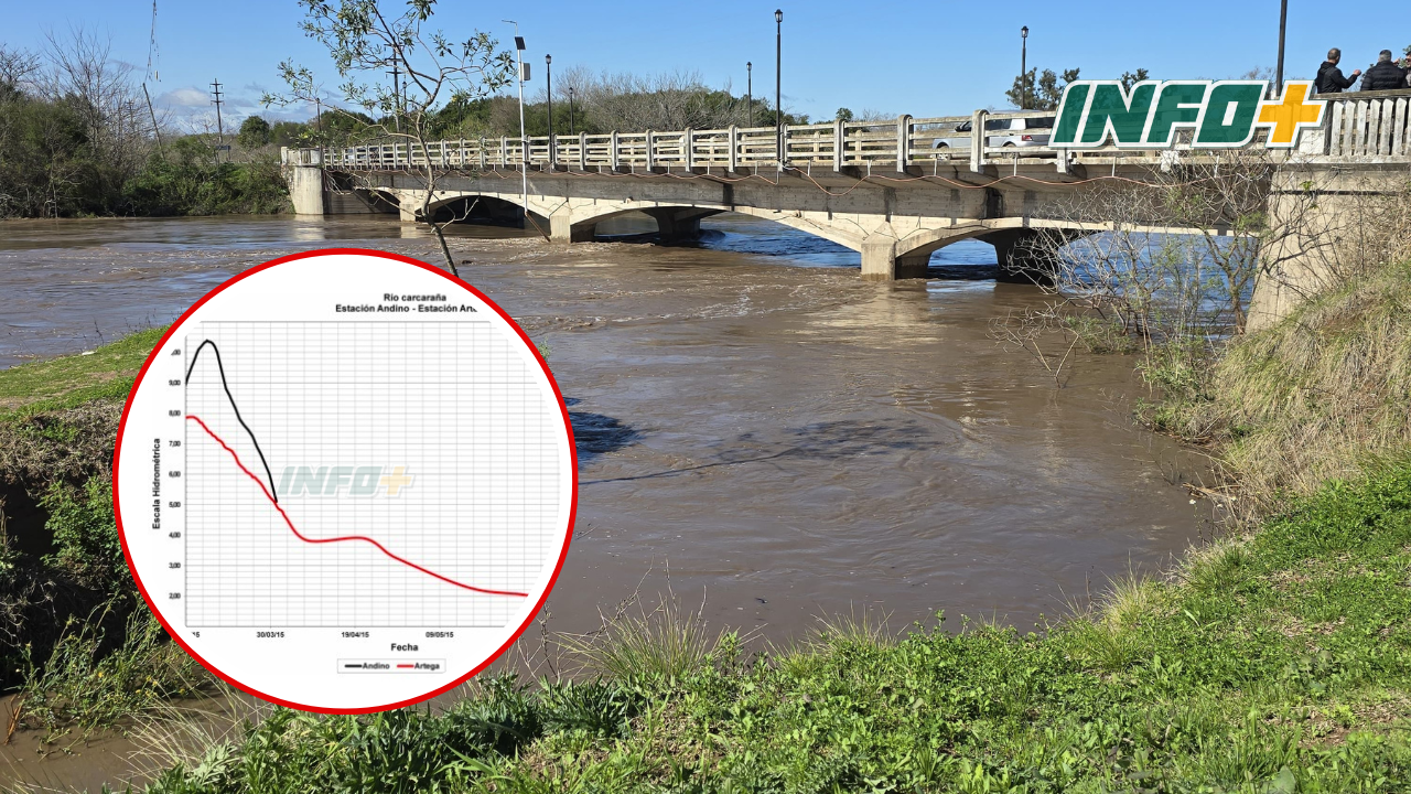 Según los datos recabados en una estación telemétrica ubicada en la intersección de la Ruta Provincial N° 15, cerca de Arteaga y Cruz Alta, el pasado domingo 31 de agosto a las 20:45 se registró un pico hidrométrico de 8,12 metros, equivalente a un caudal estimado de 800 m³ por segundo.