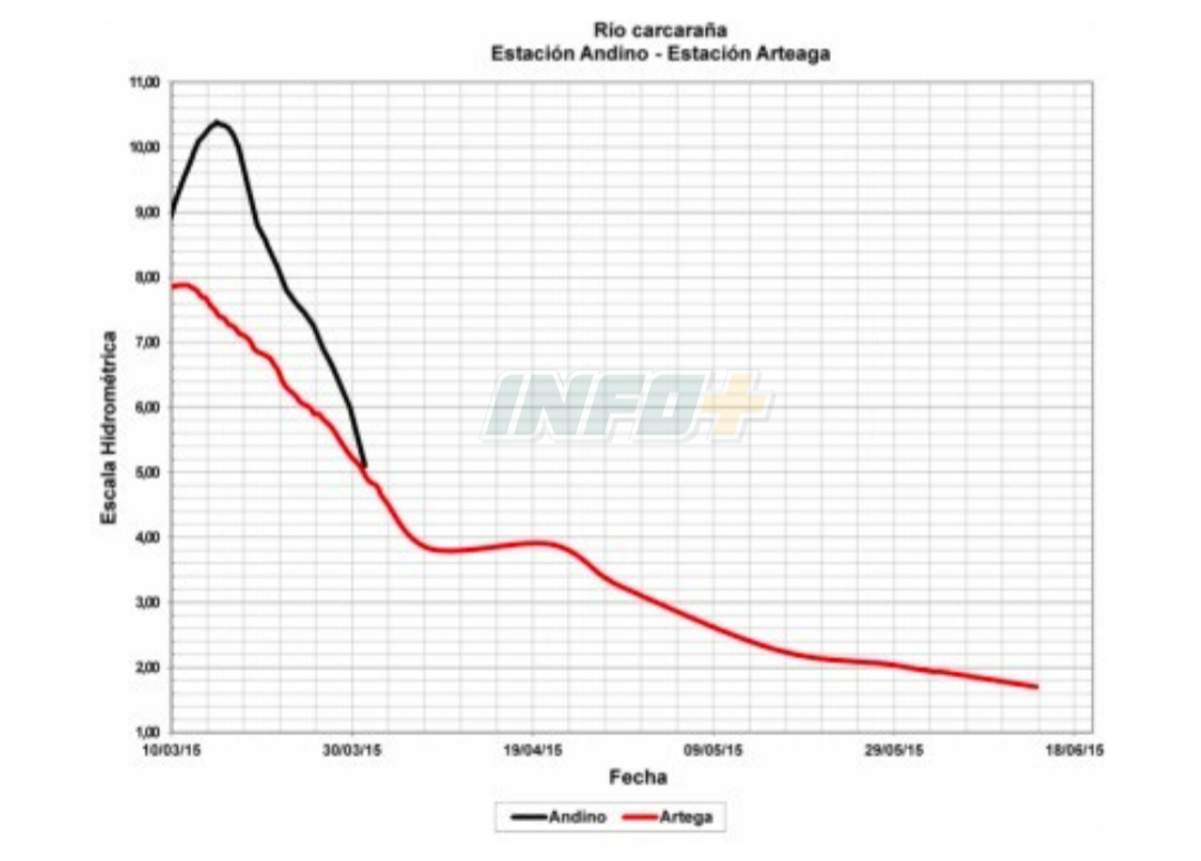 En este contexto, se estima que el nivel del agua en la Ruta Provincial N° 10, a la altura de Andino, podría llegar a los 10 metros de altura, replicando un comportamiento similar al registrado durante la creciente de 2015, generando importantes desbordes, superando el nivel de la Ruta 10 y llegando a viviendas de la zona ribereña.