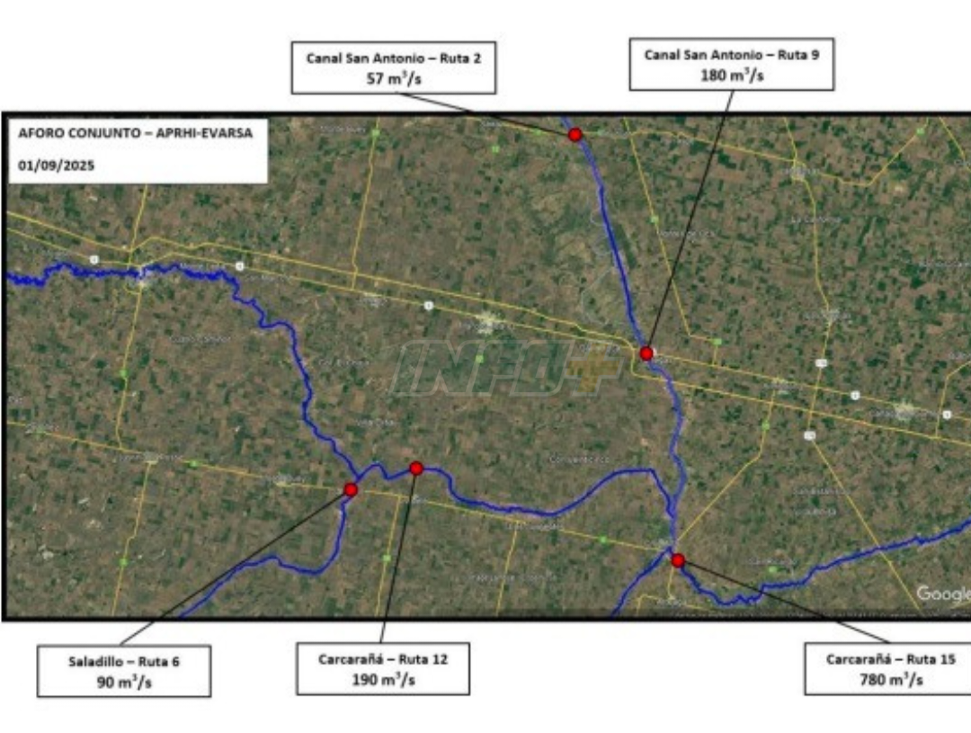 Además, mediciones realizadas en la Autopista N° 9 (a la altura de Carcarañá) revelaron un ascenso del tirante de agua de 53 centímetros en solo 9 horas durante este lunes 1 de septiembre, lo que confirma el avance paulatino de la crecida.