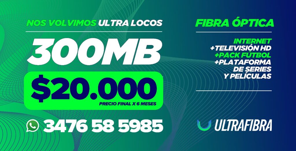 Durante todo el mes de septiembre, UltraFibra lanza una súper promoción en todas las localidades donde brinda servicio, con un plan que combina máxima velocidad, entretenimiento y la mejor tecnología en fibra óptica directa al hogar, a un precio imposible de dejar pasar.