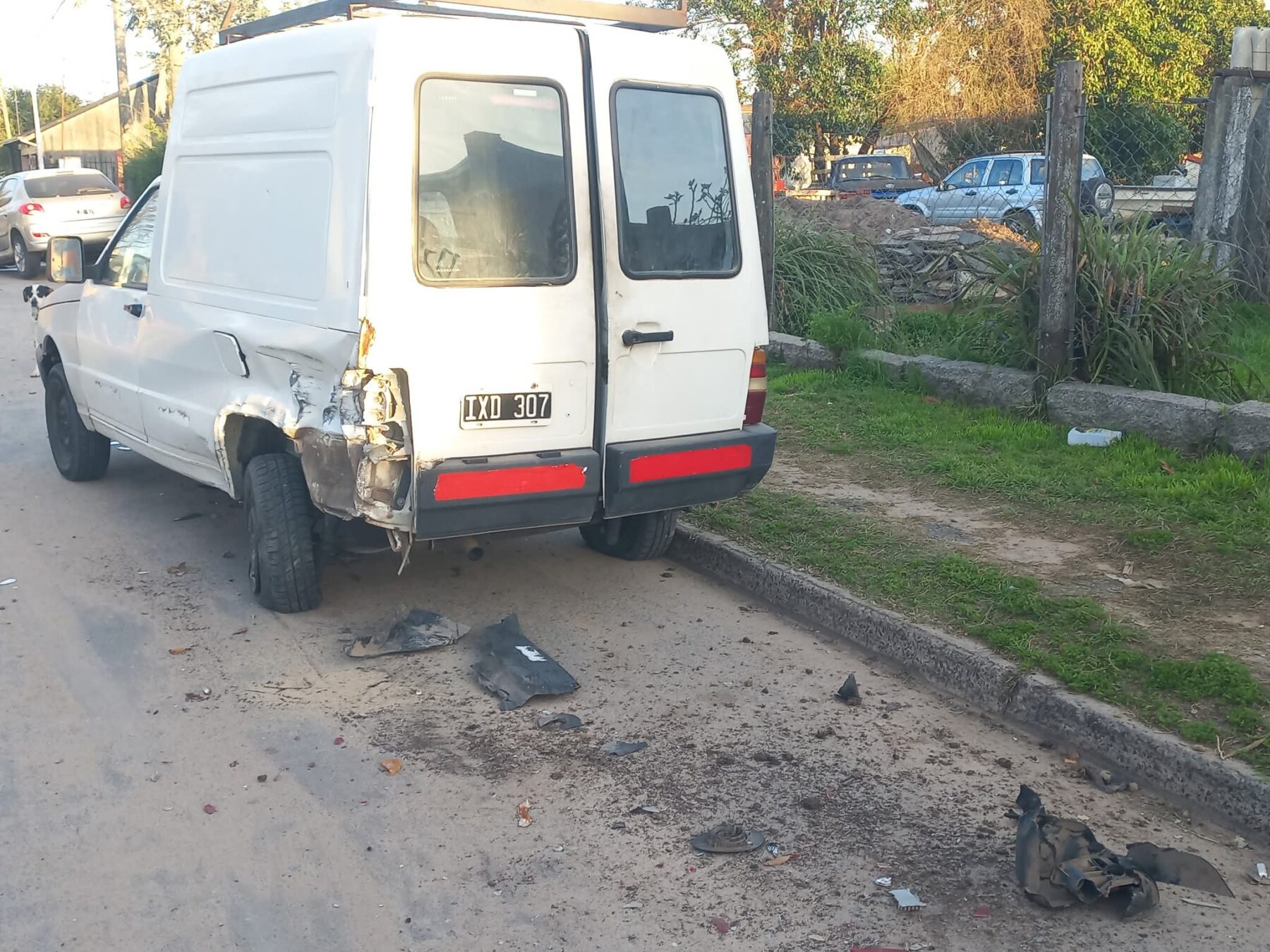Un joven conductor perdió el control de su Peugeot de color gris y terminó impactando violentamente contra un utilitario marca Fiat Fiorino que estaba estacionado, para luego colisionar contra un árbol en la vereda sur.