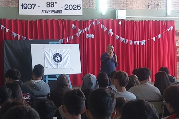 La actividad, dirigida a todos los cursos de la institución, reunió a más de 300 estudiantes que escucharon atentamente las exposiciones de los veterinarios Mariana y Cristian Bortolotto, quienes abordaron temas vinculados al cuidado de los animales, la vacunación, la prevención de enfermedades transmisibles y la relación entre el bienestar animal y la salud de la comunidad.
