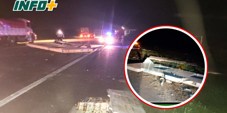 Milagrosamente no hubo consecuencias graves: un camión perdió parte de su carga y pesadas planchas de hormigón que cayeron quedaron atravesadas en la calzada, lo que obligó a interrumpir el tránsito por algunos minutos.