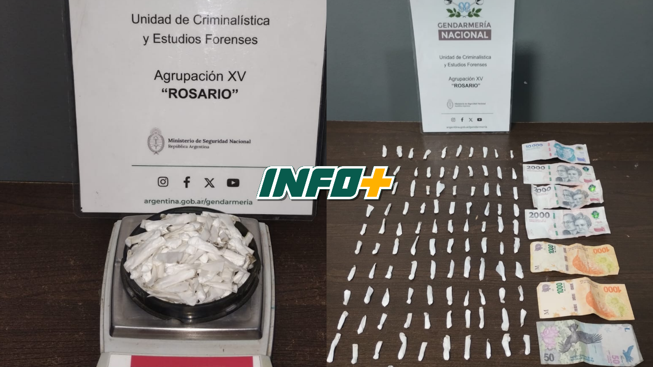 Durante el control, los gendarmes hallaron 104 envoltorios con cocaína, con un peso total de 21,4 gramos, y $18.050 en efectivo. El valor estimado de la sustancia secuestrada asciende a $467.055.