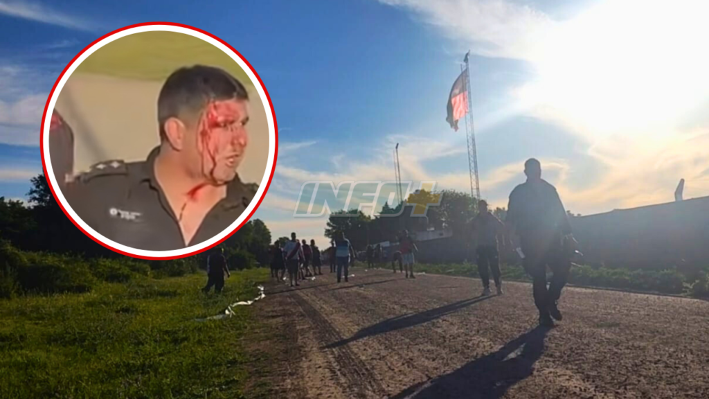Ante esta situación, los efectivos intervinieron para ordenar el cese de la violencia. En medio del desorden, uno de los proyectiles impactó en la cabeza de un efectivo policial, subjefe de la Comisaría local, quien sufrió lesiones de carácter leve.