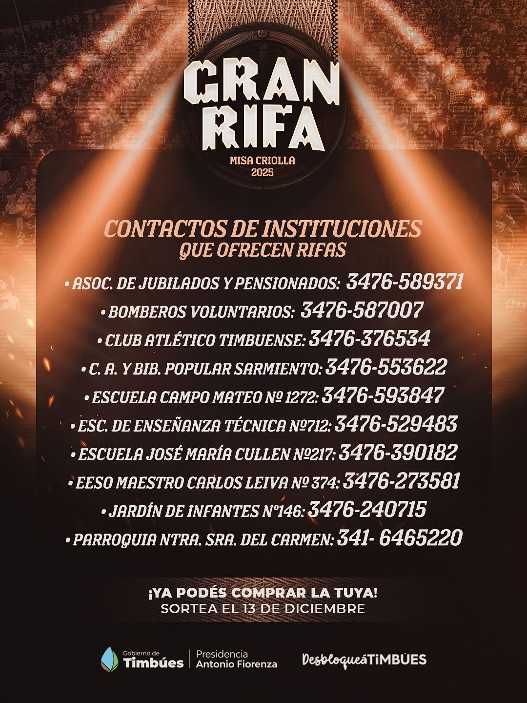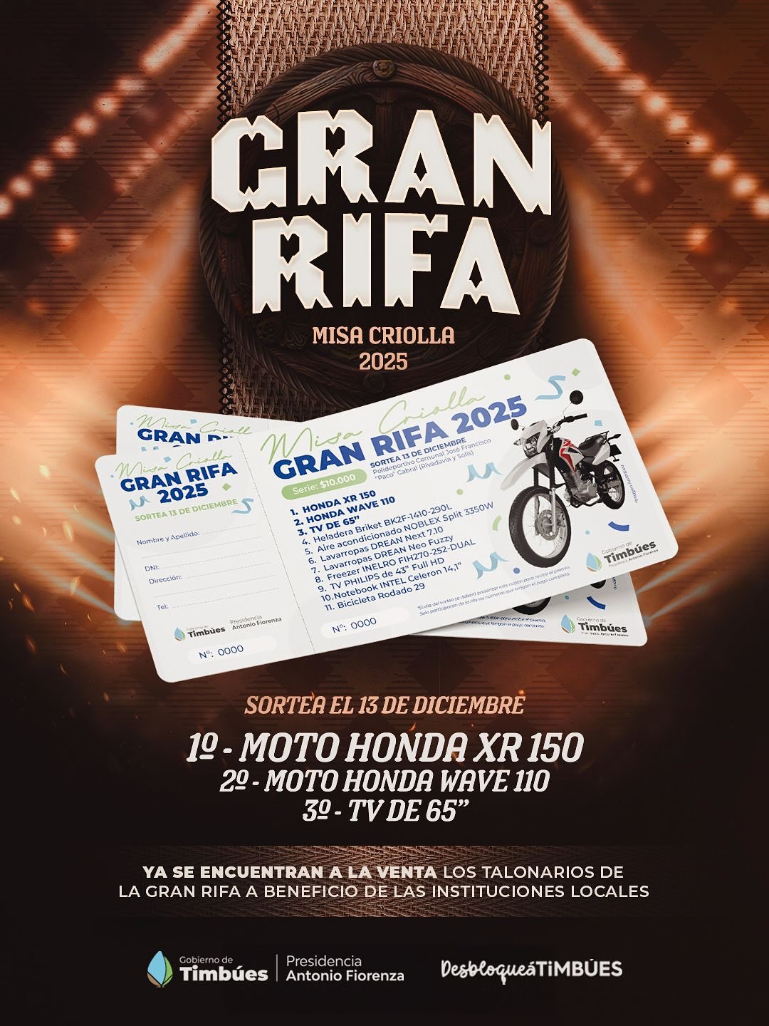 El Gobierno de Timbúes este jueves realizó la entrega de los cupones de la Gran Rifa Misa Criolla 2025 para que puedan ser vendidas por las instituciones locales.