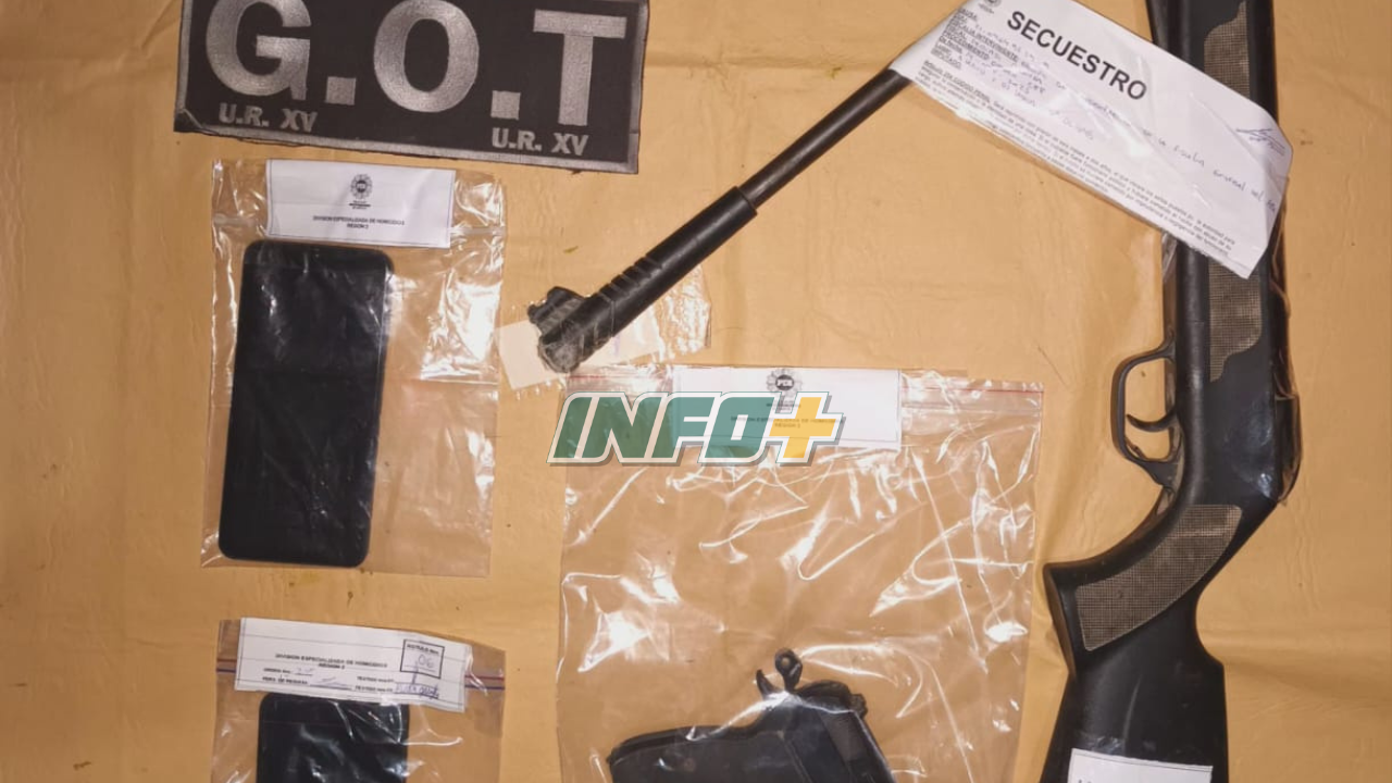 Entre lo secuestrado se encuentran seis celulares, una motocicleta Guerrero Trip 110cc , un rifle de aire comprimido y una pistola de aire comprimido. Un hombre de 64 años fue aprehendido y trasladado a la Comisaría de Oliveros, pero luego fue liberado.
