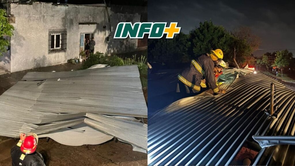 Una casa que tenía un techo de losa y, por encima, un sobretecho de chapa, sufrió la voladura completa de esa estructura, que terminó cayendo sobre dos casas ubicadas en la vereda de enfrente, indicaron fuentes oficiales a Info Más.