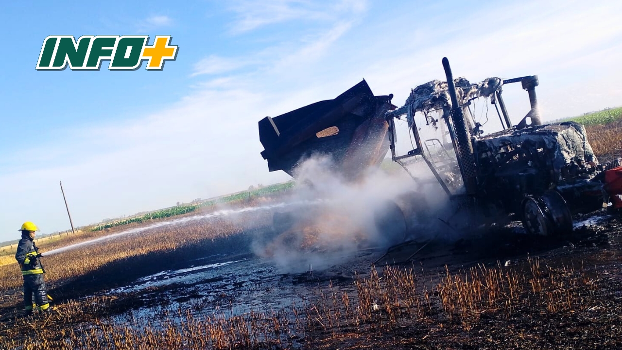 Al arribar al lugar, el personal constató la presencia de un tractor con monotolva completamente envuelto en llamas, además del inicio de un foco ígneo que afectaba un sector de rastrojo de trigo.