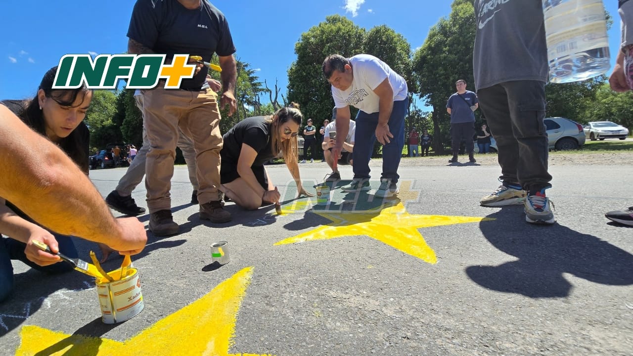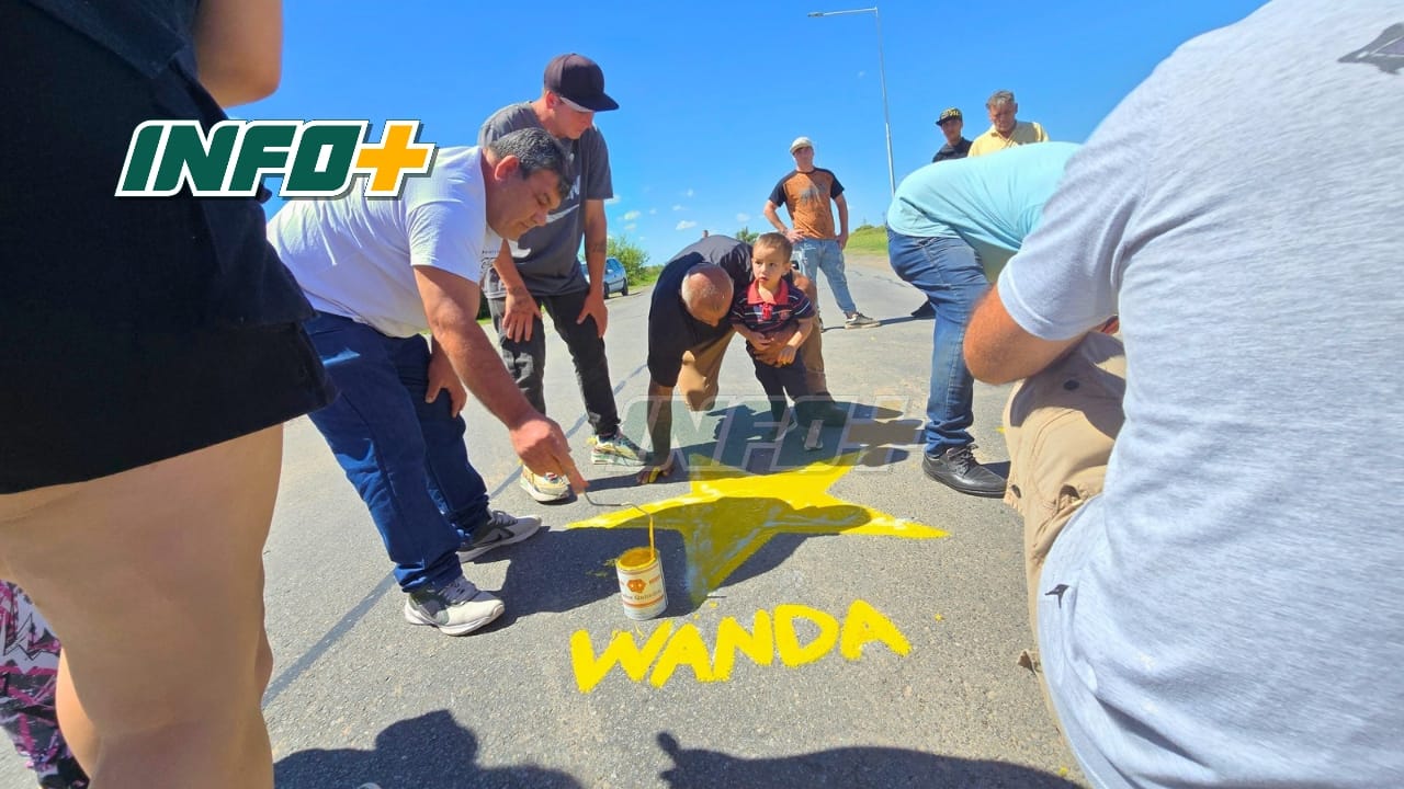 El homenaje se realizó a partir de las 10.30 de la mañana con la marcación y posterior pintada de las estrellas y bajo de ellas, los nombres de ambas víctimas. Además, a un costado de la traza, se colocó cartelería que expresa «Sea prudente, aquí hubo dos víctimas fatales», acompañado también por los nombres de Yanina y Wanda.