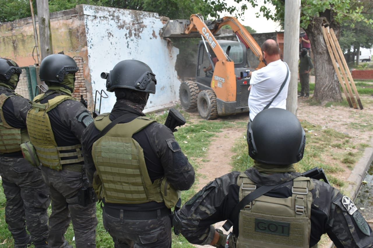El Gobierno de Santa Fe llevó adelante este jueves la demolición de un búnker de venta de drogas ubicado en calle Fournier 1276, en San Lorenzo, en el marco de las acciones contempladas por la Ley de Microtráfico.