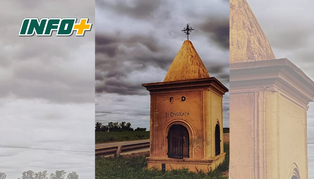 La imagen corresponde a la Capilla «La Consolata», la cual fue declara como Patrimonio Cultural e histórico Provincial en agosto del año 2022. Se trata de una edificación histórica construida en 1911 por Félix Druetta en honor a la Virgen de la Consolata. Se encuentra en la intersección de la Ruta 9 y 28S.