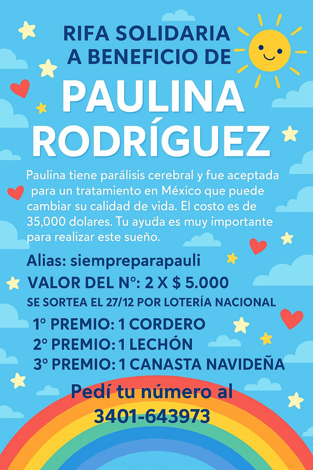 Quienes deseen participar o solicitar su número pueden comunicarse al 3401-643973 o realizar su aporte mediante el alias siempreparapauli.