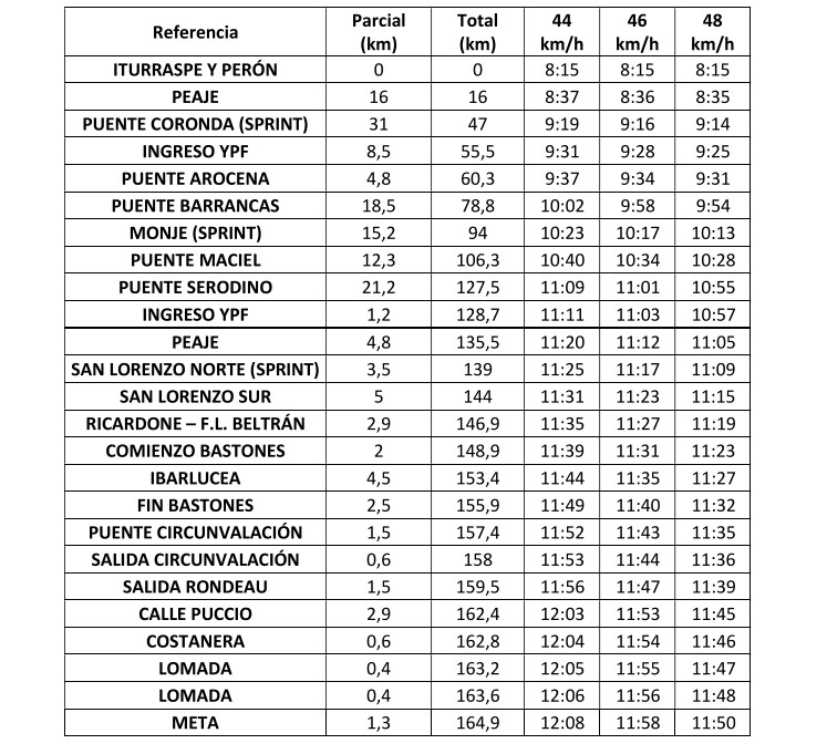 Los equipos arribarán el sábado 13 a la Secretaría de Deportes en Santa Fe, donde se realizará la presentación oficial a las 18.30 en la Costanera Oeste. La competencia comenzará el domingo a las 7 en el Puente Colgante, en “tren controlado” hasta Iturraspe y Perón. La largada efectiva será a las 8.15. La carrera tiene una duración estimada de cuatro horas y finalizará en el Parque Alem de Rosario.