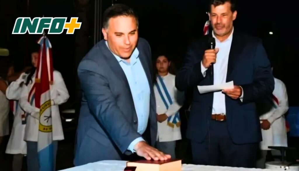 Por su parte, durante la noche, en un marco con alrededor de 300 personas entre vecinos, autoridades y políticos a nivel regional y provincial, se realizó la jura. El senador, Leo Diana, fue el encargado de tomar juramento al nuevo presidente en su primer periodo en el cargo. Entre los presentes, estuvo el Diputado Fabián Cejas.