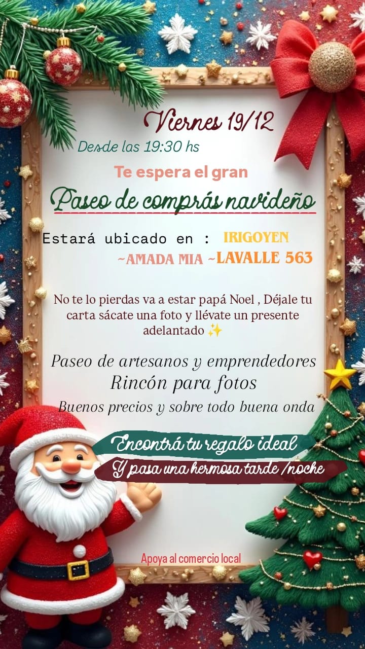 Un paseo de Compras Navideño tendrá lugar este viernes 19 desde las 19.30 en Pueblo Irigoyen para recorrer y disfrutar en familia promoviendo el comercio local y generando un espacio de encuentro en la previa de las fiestas.