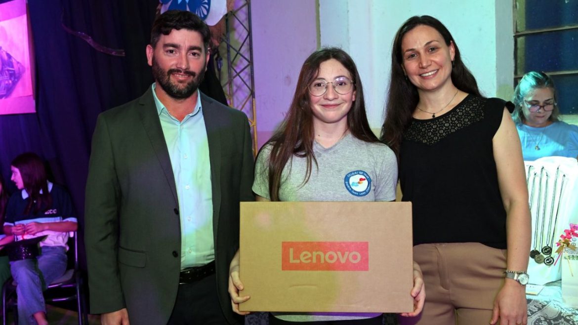 Durante la ceremonia, y en cumplimiento de la ordenanza comunal vigente, Ruiz hizo entrega de una notebook al mejor promedio de 4° año, Martina Esquivel. «Este gesto es una política de Estado para esta gestión. Lo hacemos con orgullo porque creemos en la educación como herramienta de igualdad y de oportunidades para nuestros jóvenes», expresó el mandatario.