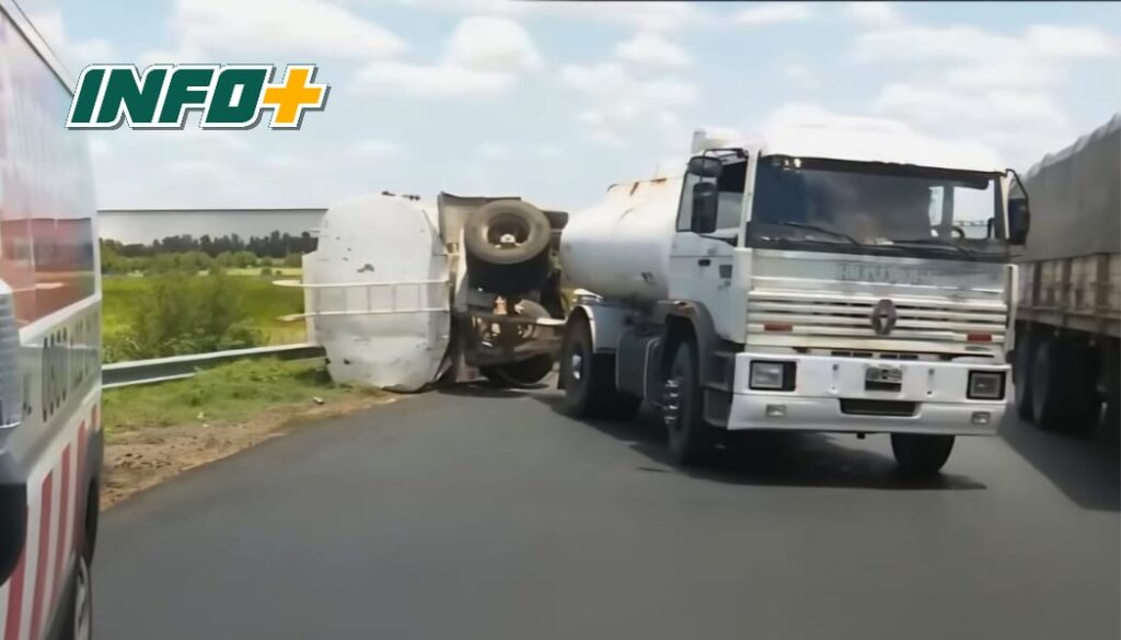 Autopista: un camión con fertilizantes volcó sobre el puente del acceso sur de San Lorenzo