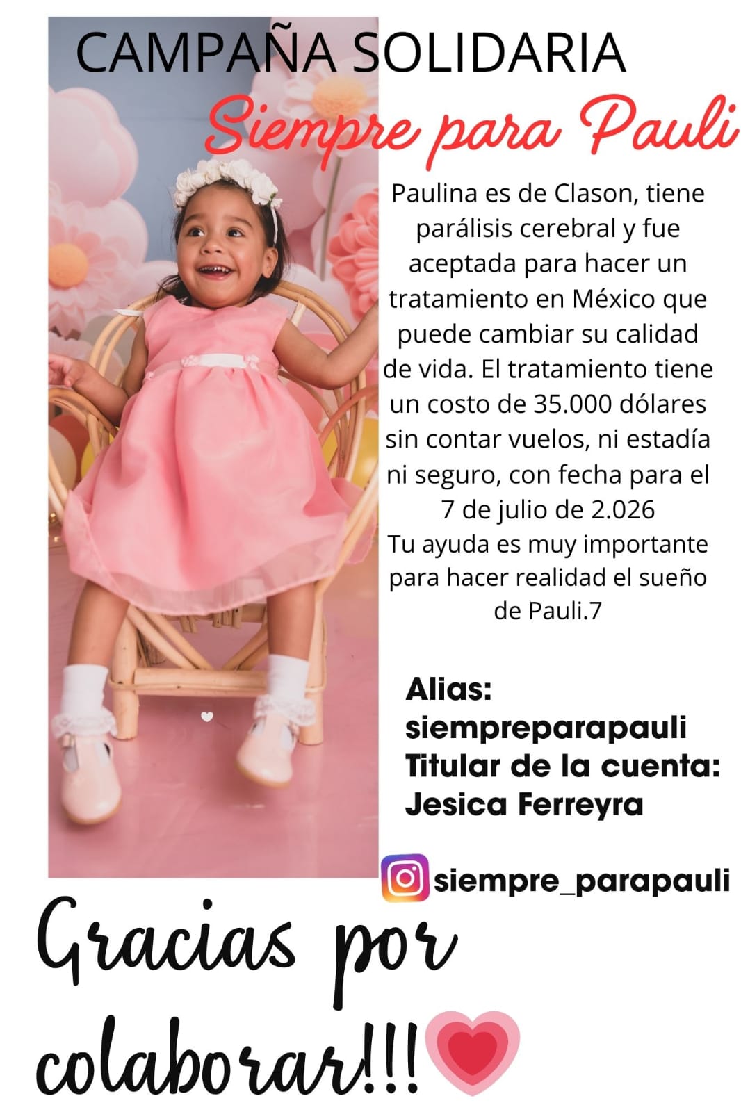 Además del evento, continúa activa la campaña solidaria para quienes deseen colaborar de manera económica. Las donaciones pueden realizarse a través del alias siempreparapauli, a nombre de Jesica E. Ferreyra. También se puede seguir y acompañar la iniciativa mediante la cuenta de Instagram @siempre_parapauli, donde se comparten novedades y acciones solidarias.