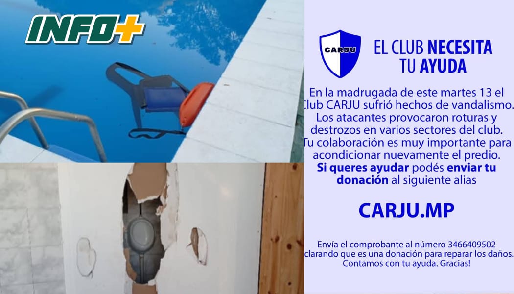 Con el objetivo de reunir fondos para reparar los daños y recuperar las instalaciones, CARJU habilitó una vía de donación a través del alias CARJU.MP. Además, solicitaron que quienes colaboren envíen el comprobante al número 3466409502, aclarando que se trata de una donación destinada a la reparación de los daños.